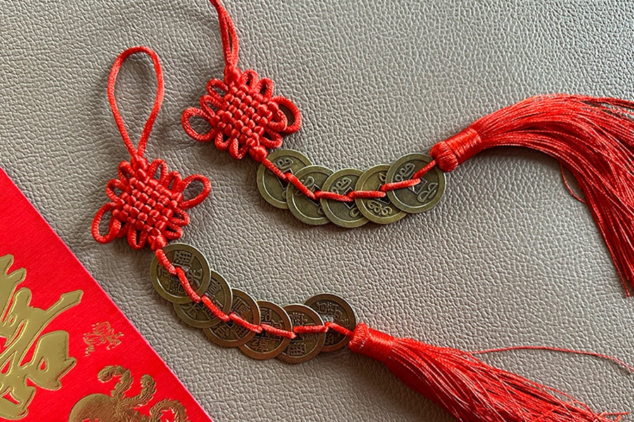Die 6 Zahl 6 und die Münzen werden dem Metall-Element zugeordnet.